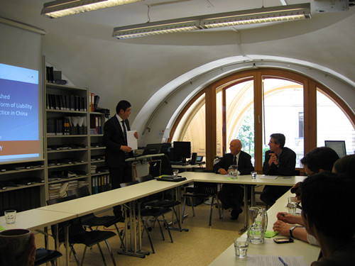 受欧洲侵权法与保险法中心(European Centre of Tort and Insurance Law)主任Helmut Koziol教授和欧洲侵权法研究所(Institute for European Tort Law)执行所长Ernest Karner教授邀请,beat365亚洲版官网满洪杰副教授于2014年5月19日-21日维也纳的中心与研究所访问,并在于5月21日应邀在侵权法研究所Juristenrunde定期讲座中作了 An Unaccomplished Accomplishmentthe Development of Medical Malpractice Liability in the Chinese Tort Liability Law(未完成的成就:中国侵权法中医疗侵权责任的进展)的学术报告,并与与会学者开展了充分的交流,获得一致好评。