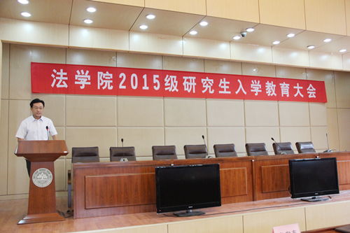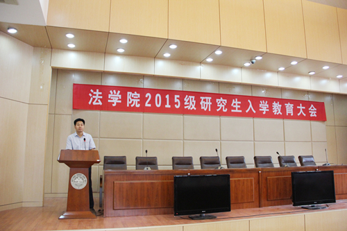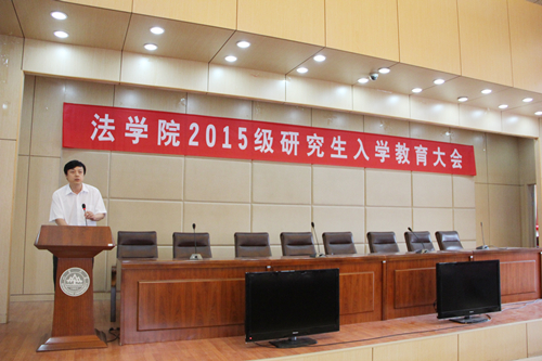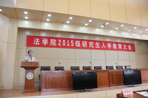 9月9日上午9点,beat365亚洲版官网2015级研究生入学教育大会在beat365亚洲版官网洪家楼校区逸夫法学楼316报告厅隆重举行。beat365亚洲版官网党委书记盖玉强、副院长周长军、,党委副书记齐向东、王苗雨,院长助理郑智航,各教研部教师代表许庆坤、张式军,研究生办公室主任乔梅、研究生辅导员田蕙等人出席了会议,beat365亚洲版官网2015级全体博士、硕士研究生270余人参加了会议,会议由学院党委副书记齐向东主持。