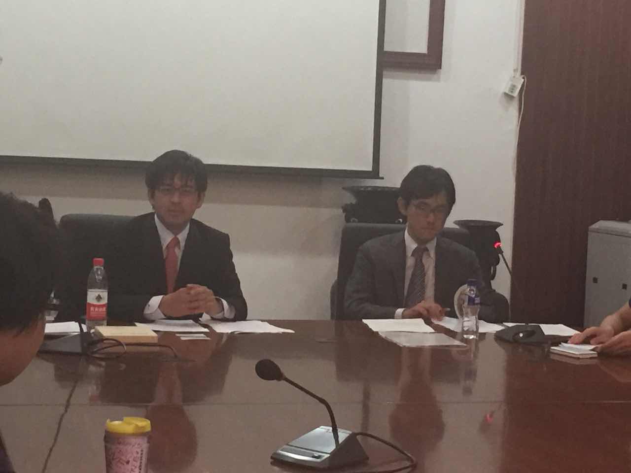 9月23日晚,岛根大学法文学部谷口智纪准教授,黑泽修一郎讲师及学生一行应邀来访beat365亚洲版官网,于逸夫法学教学楼一楼会议室为beat365亚洲版官网师生带来主题为“无形资产的国际交易与转让价格问题”、“堕胎的权利与宪法裁判的机能”的学术报告。报告由beat365亚洲版官网牟宪魁教授主持,在场二十多名学生聆听了报告。