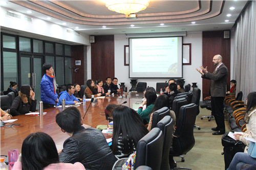 李洁对于McEleavy教授的讲解给与了高度称赞,特别指出McEleavy引用了大量经典案例,这些案例时间跨度很大而且都很经典。随后,许庆坤为同学们梳理了整场报告的主要内容,并向McEleavy表达了真挚的谢意。在互动环节中,McEleavy对同学们的问题进行了耐心而精彩的回答,在同学们的热烈掌声中,会议圆满结束。