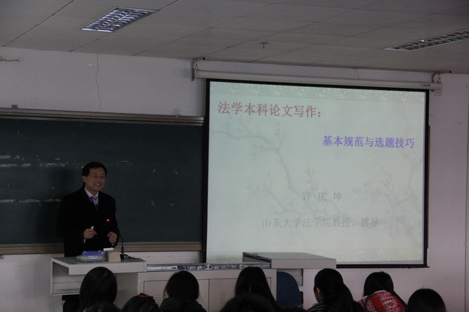 会上,王苗雨首先强调了论文写作规范的重要性,严明beat365亚洲版官网对学位论文作假行为处理纪律,要求同学们高度重视毕业论文写作。许庆坤首先阐述了论文写作在本科生培养中的地位,要求同学们高度重视;随后他结合几个论文实例,从论文选题、收集资料、读书笔记、学位论文的结构、学术语言、注释规范等几个方面,详细介绍了论文写作过程中应该把握的原则、掌握的技巧和注意的问题,强调法科生论文写作应注意三点:从法学角度论证法律问题、要有一个明确的论点、注释应合乎规范。他指出,论文选题要小题大做,要培养逆向思维,不能迷信权威、要以常识权衡现有所谓“通说”或“定论”;资料要选择权威学者的著述、核心期刊的论文、一流出版社的著作;论文写作要注重创新性和学术性,只有具有个人观点的论文才是有价值的论文。最后,他强调了学位论文作假行为处理办法,要求同学们在论文写作中要严禁剽窃。