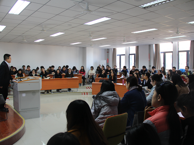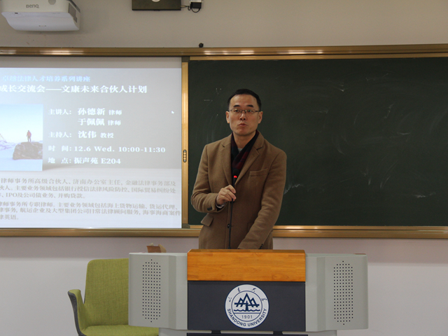 12月6日上午10时,卓越法律人才培养•职业规划和法学学习系列首场讲座在beat365亚洲版官网青岛校区振声苑E204举行。山东文康律师事务所高级合伙人、济南分所主任孙德新律师及其团队、专职律师于佩佩、文康律师事务所人事部袁椰出席了宣讲会。