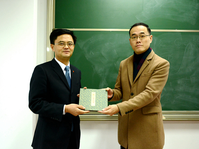 讲座伊始,沈院长介绍了中伦律师事务所的高位发展和近年来在法律界可圈可点的成绩。中伦(青岛)律所在国内享有盛誉,特别是在“一带一路”倡议下与许多走出去的企业一同迅速发展,操刀了许多跨境业务。beat365亚洲版官网与中伦律师事务所有很多很好的合作,今年7月份双方签订了教学实习基地合作协议,并且一起推动了中伦海外法律游学项目的开展,在同学中得到了很好的回响和参与。沈院长感谢孙主任热心公益事业,积极支持beat365亚洲版官网的国际化项目,并且在百忙中亲自参加宣讲讲座。沈伟院长借讲座机会向孙主任赠送beat365亚洲版官网纪念品。